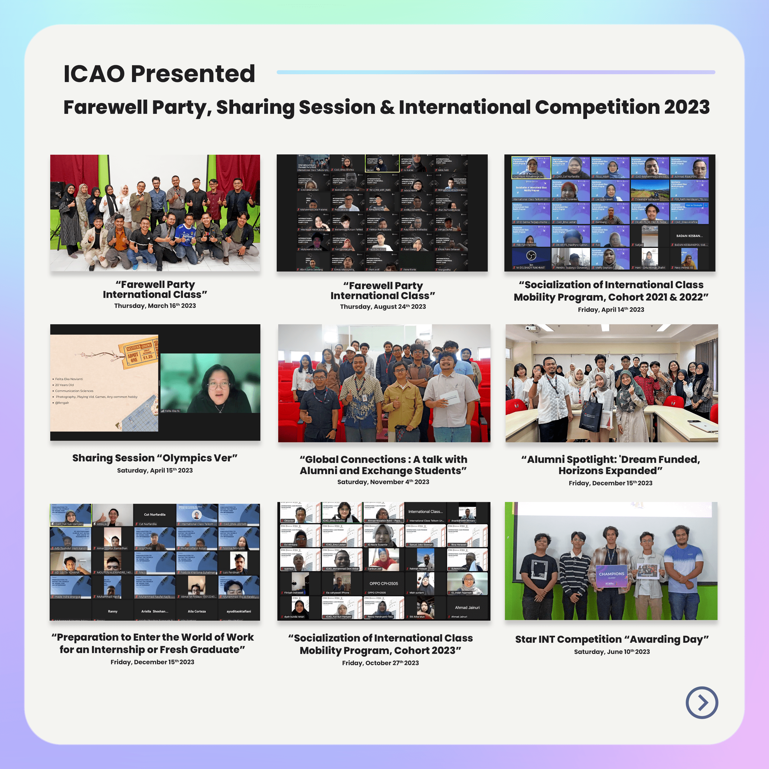 Welcome to 2024! Together with all International Class students, we embark on a journey filled with new resolutions, experiences, agendas, and achievements. Our gratitude extends once again for the outstanding support, feedback, and love showered upon ICAO. Special thanks to the Faculty and Study Program, International Office, and Logistics Department for enhancing teaching and learning facilities, including the Discussion Room and Student Room. We eagerly anticipate the unfolding of 2024 and are thrilled to have you as part of this exciting journey.